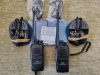 2 Stk UHF radioer med øretelefoner/mikrofoner, manual og bordladere.