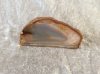 Agatskive Skive af Agat, Kan evt. bruges som Samleobjekt, Brevpresse, bogstøtte, eller måske healing, hvis nogen har forstand på det. Vægt 486 Gram. Tykkelse ca. 2 cm. Længde ca. 14 cm. Bredde/Højde ca. 9 cm. Skiven er poleret på den ene side.